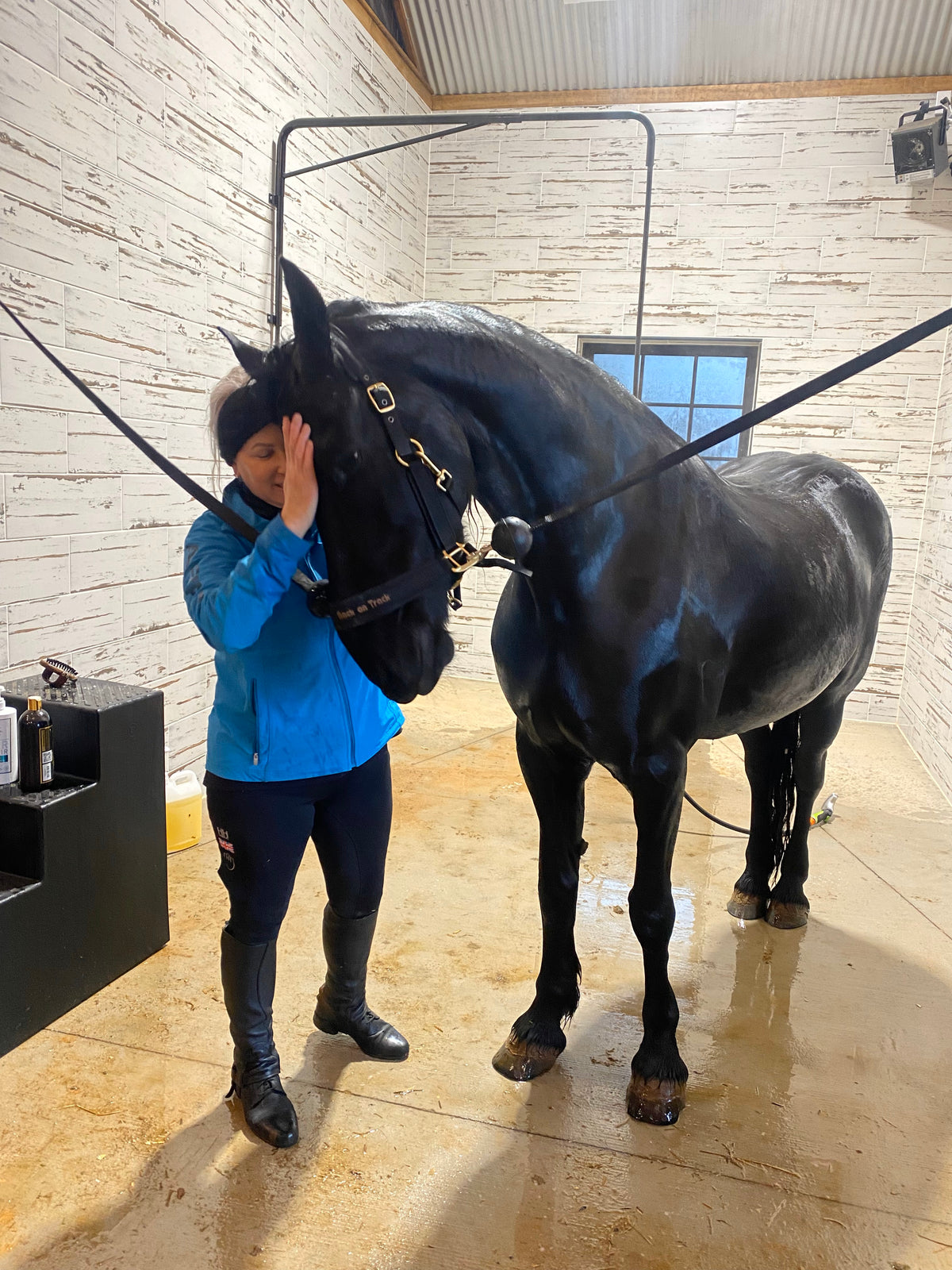 Tiffany and Demy sharing a moment after a refreshing bath. The bond between horse and human is built on trust, care, and a whole lot of love.